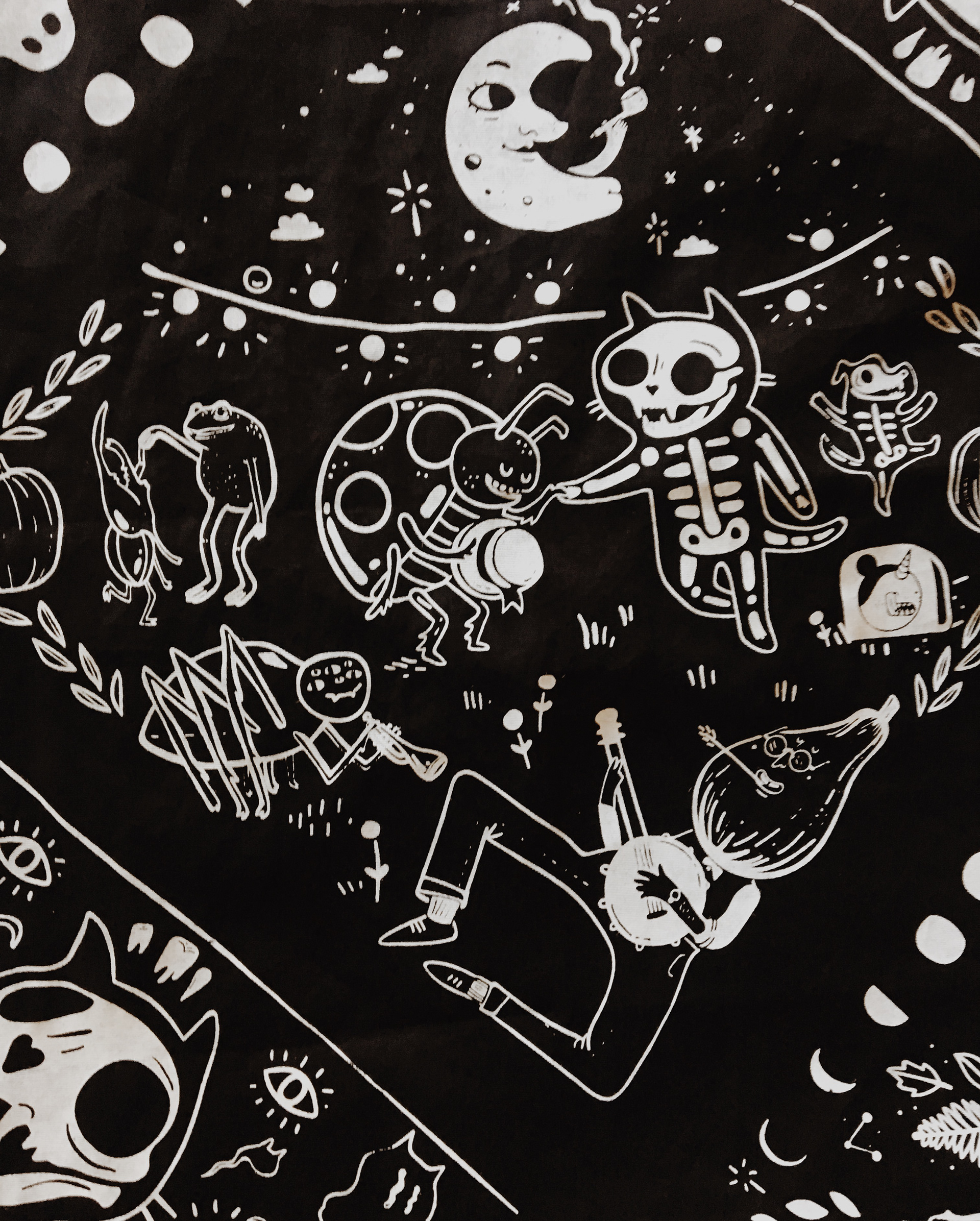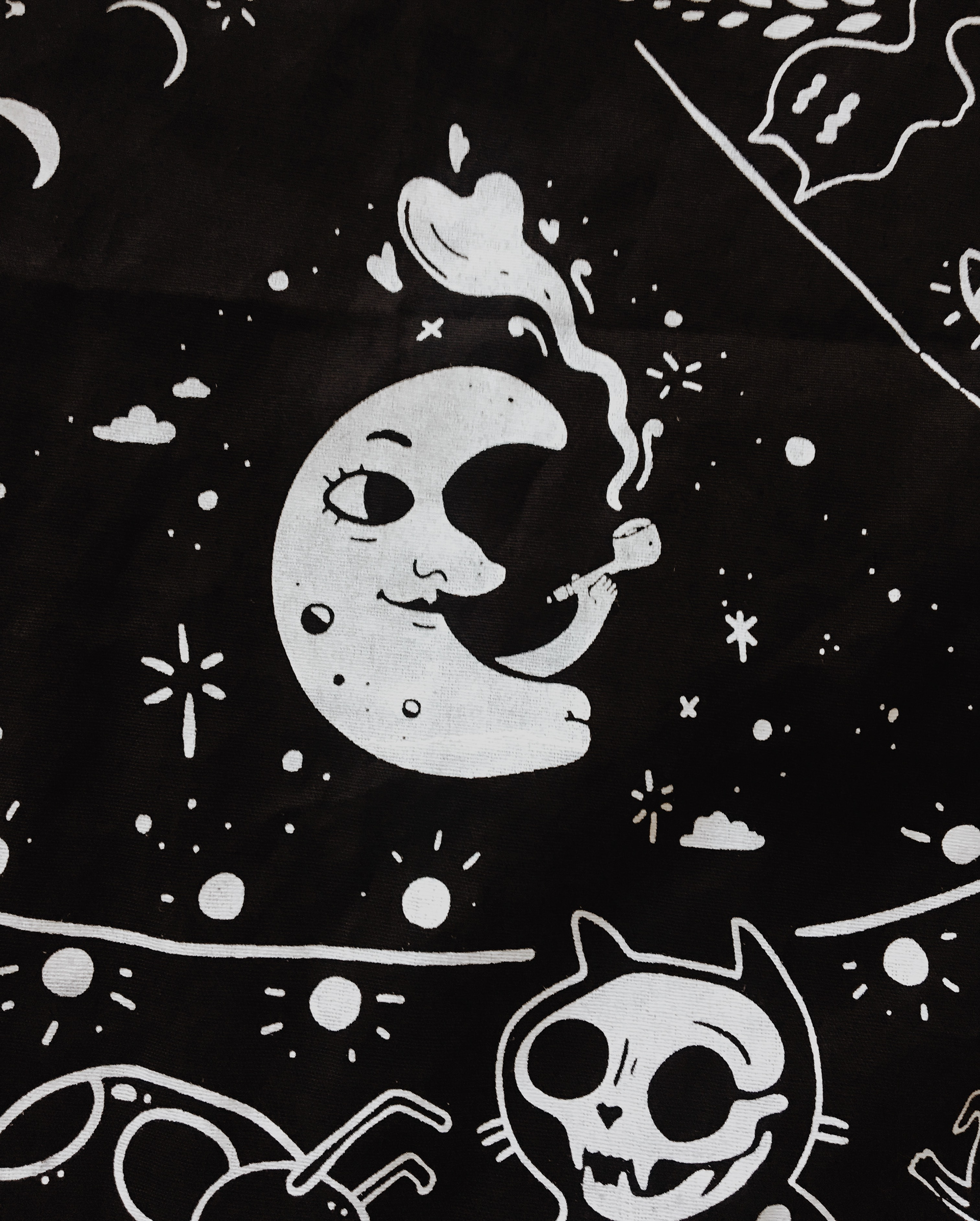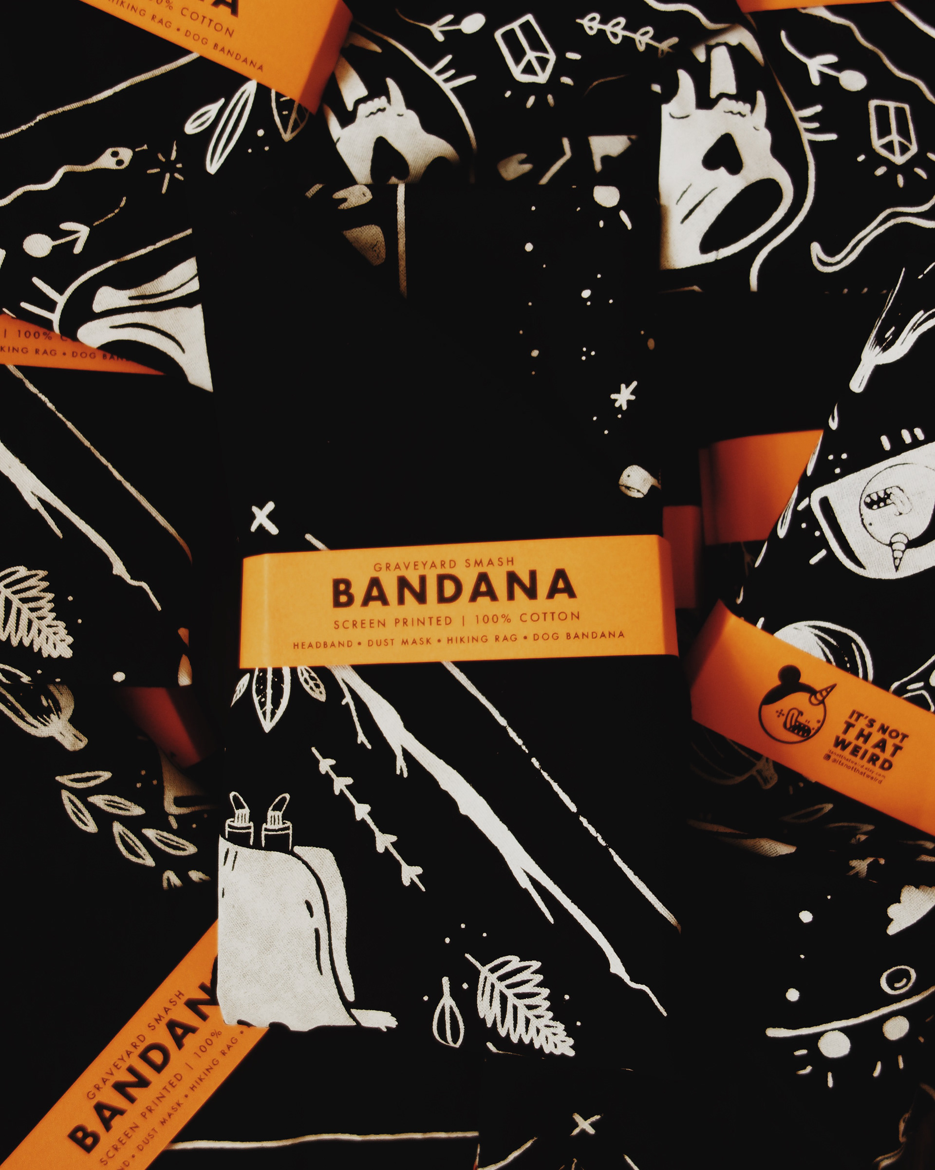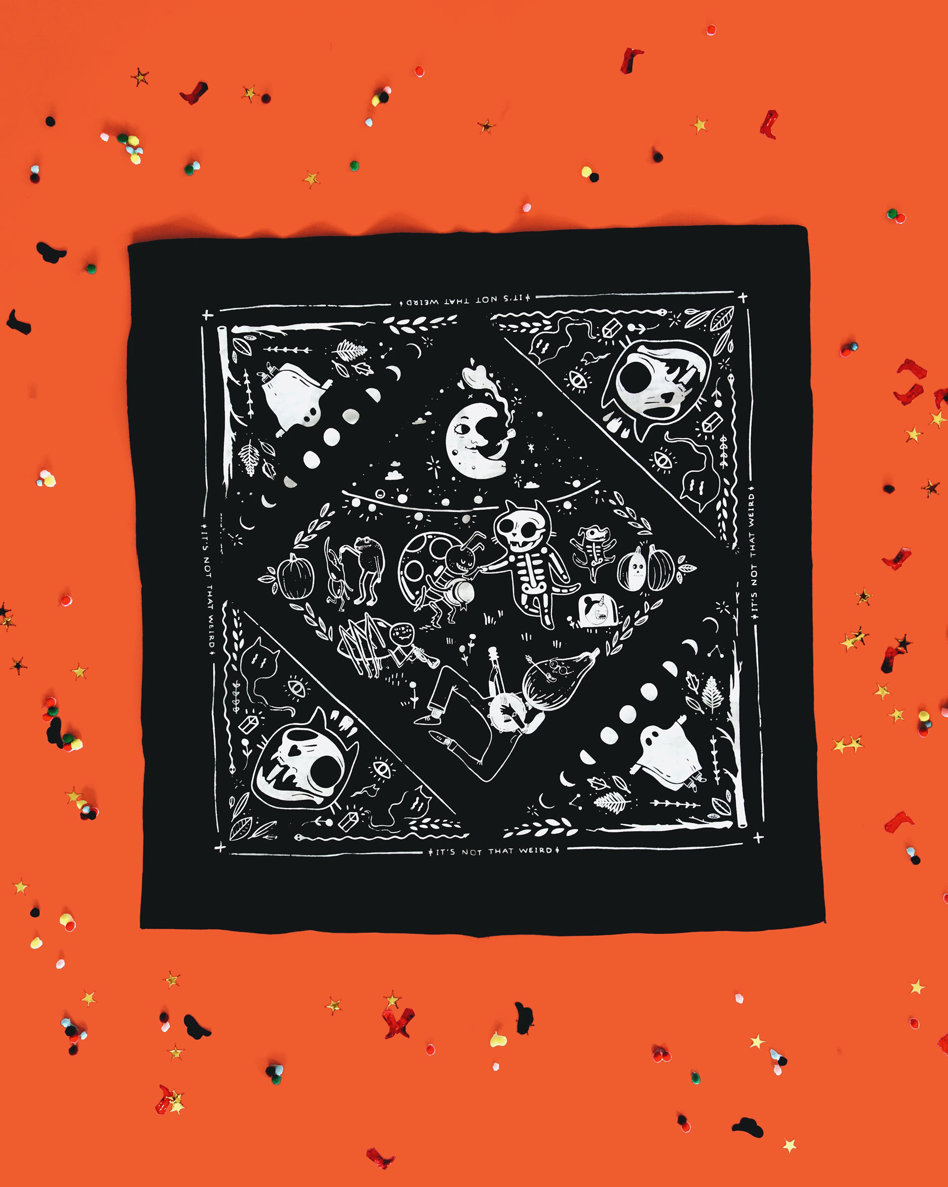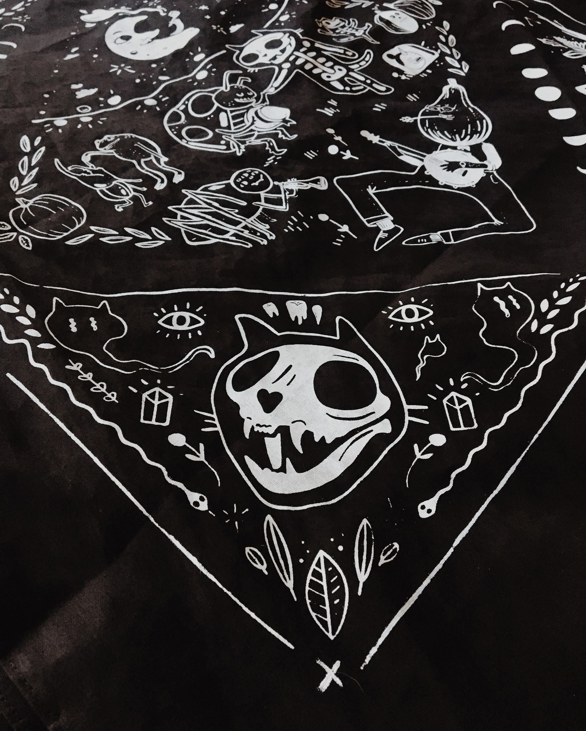 Illustrated digitally, hand pulled screen print on 100% cottonĀ bandana
