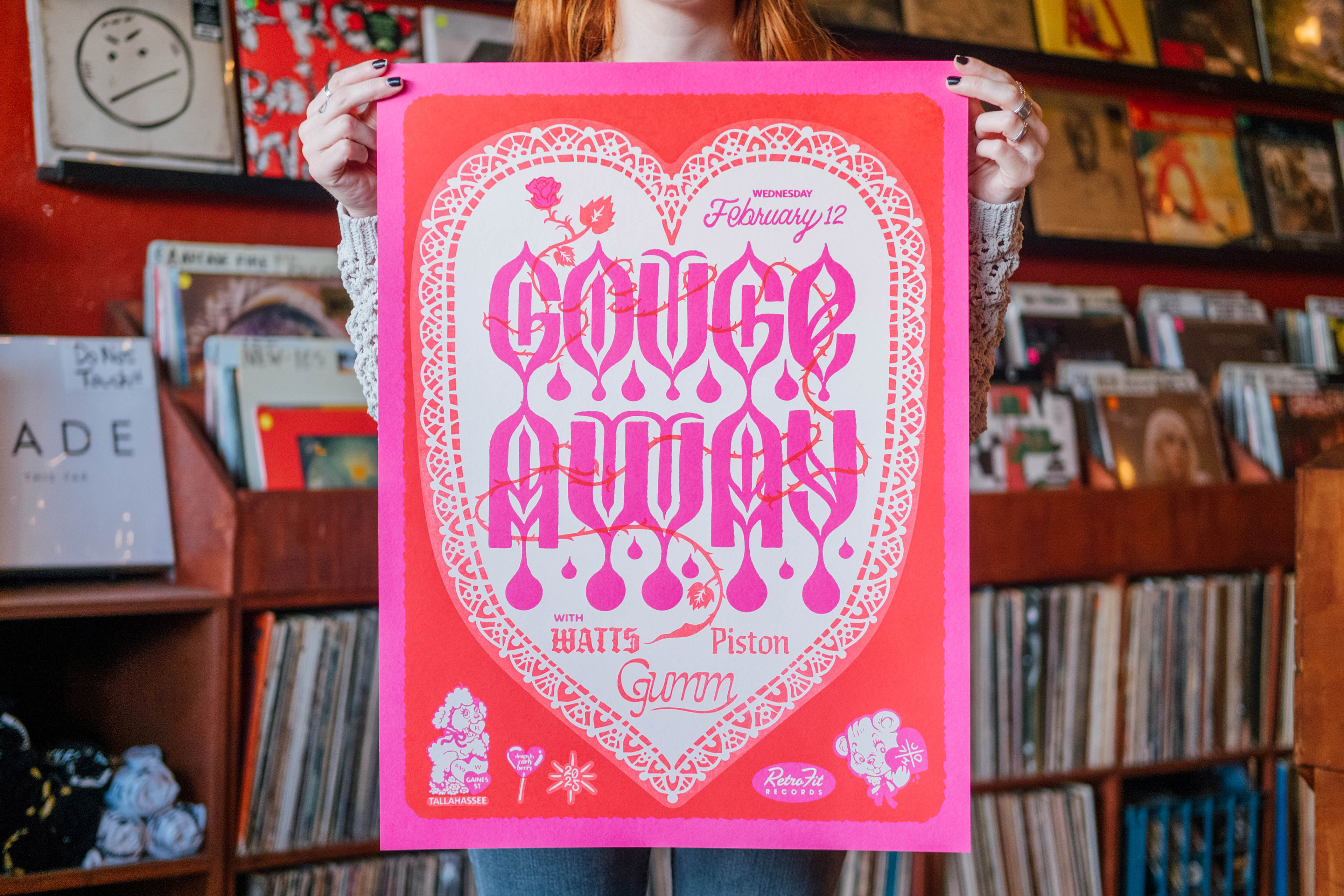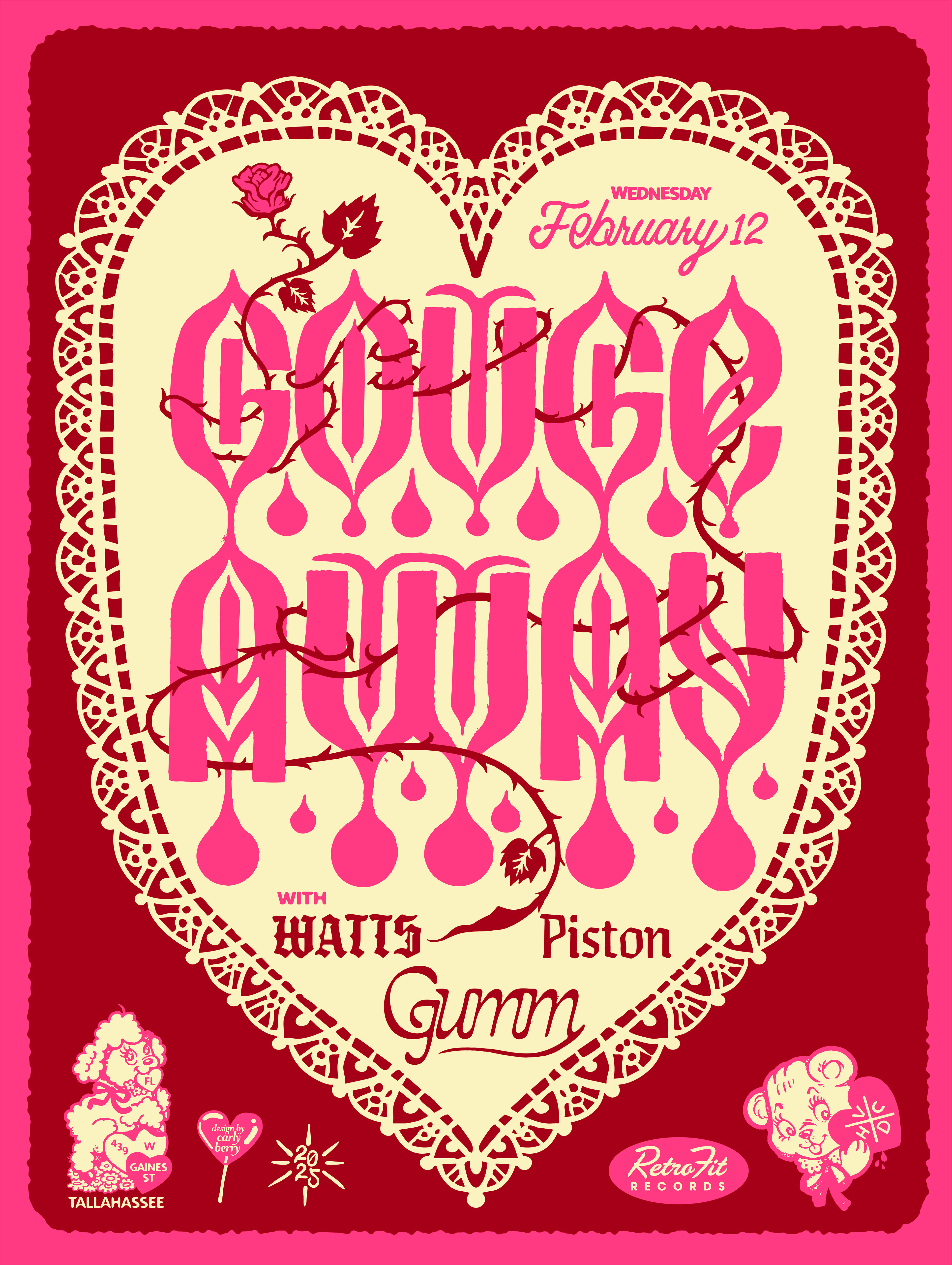 This was for a hardcore concert in Tallahassee, Florida at Retrofit Records. I loved working within the Valentine's theme and creating a super bold design while remaining very unique with custom hand-lettering.