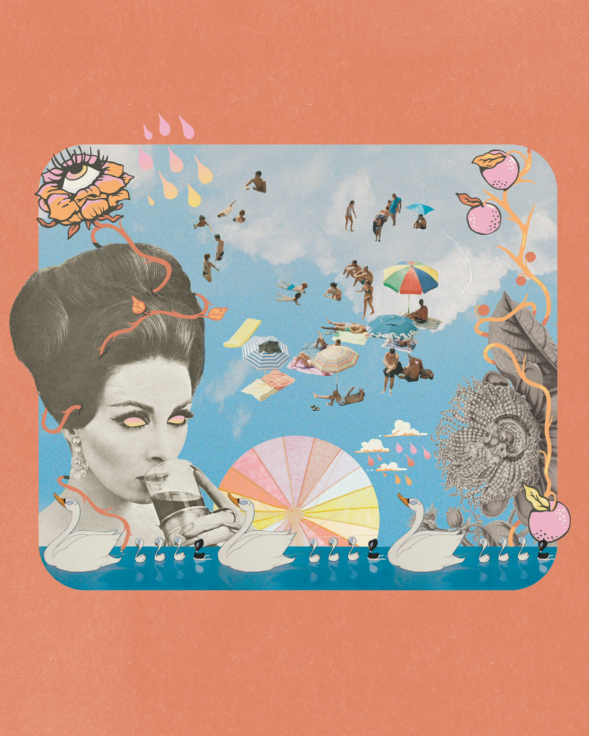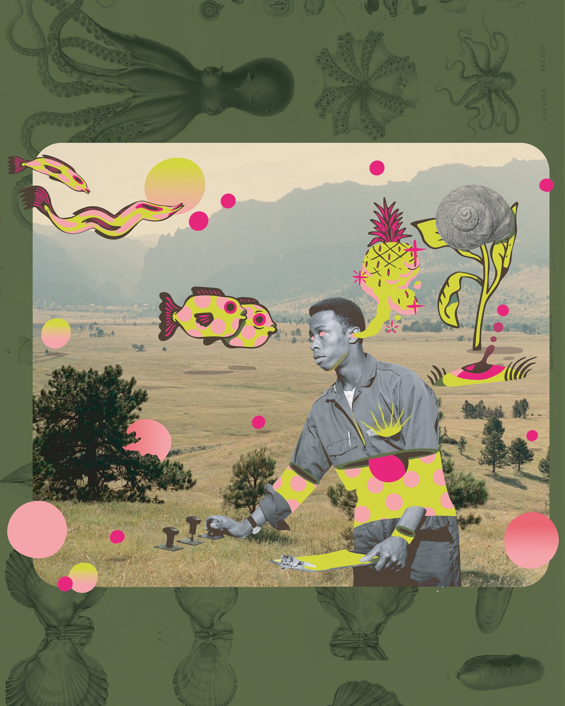 I tapped into my 35mm film photography library, mixed with illustrations, and some old public domain images to create visual work that feels tactile yet digital and surreal. I wanted them to give off a nostalgic tone with a retro-futurism flare.
