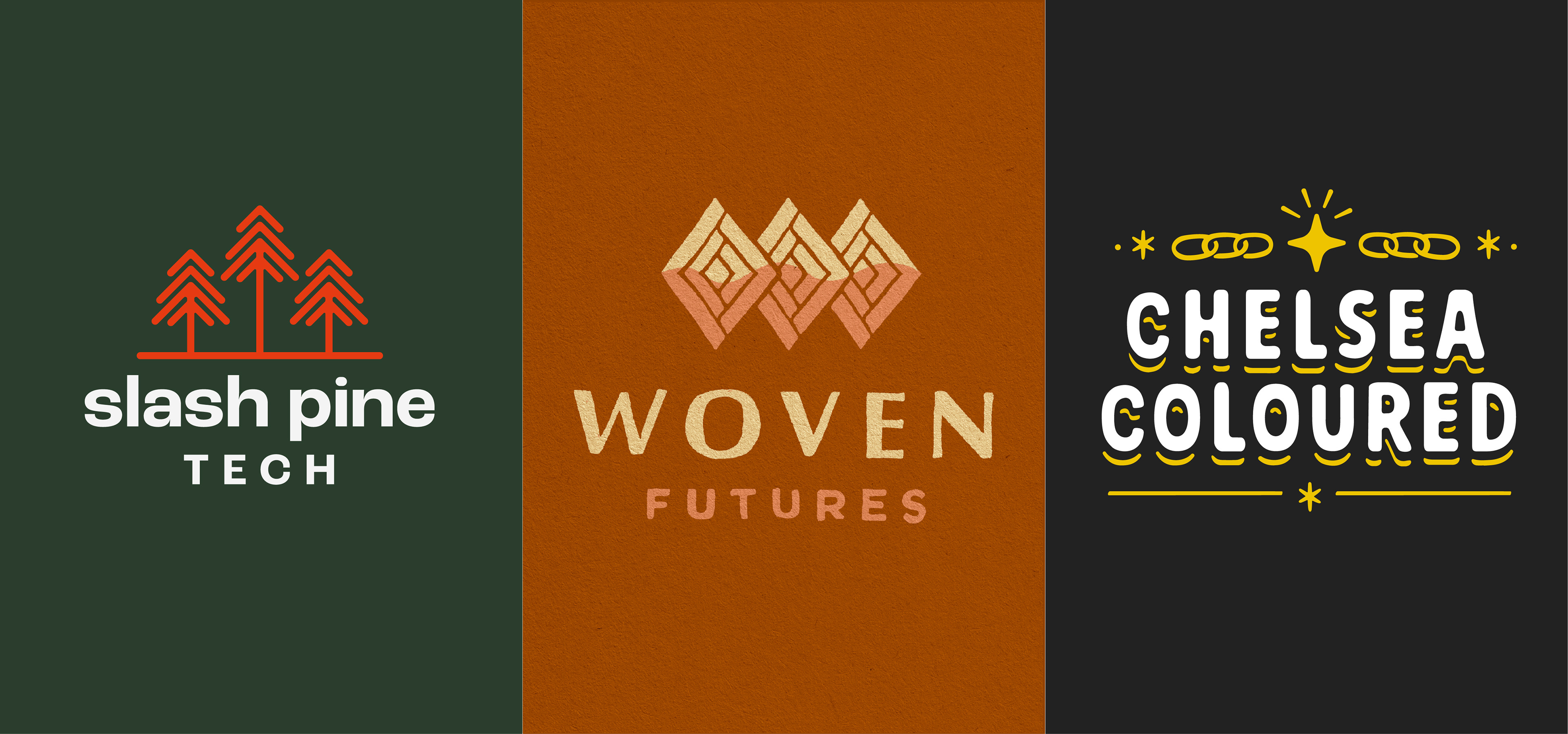 This is a little compilation of select visual identities I've created for my clients as a freelancer. I often create fully responsive identity systems, including a full lockup (as seen in these images), word mark, pictorial mark, secondary marks, and colors + typography.